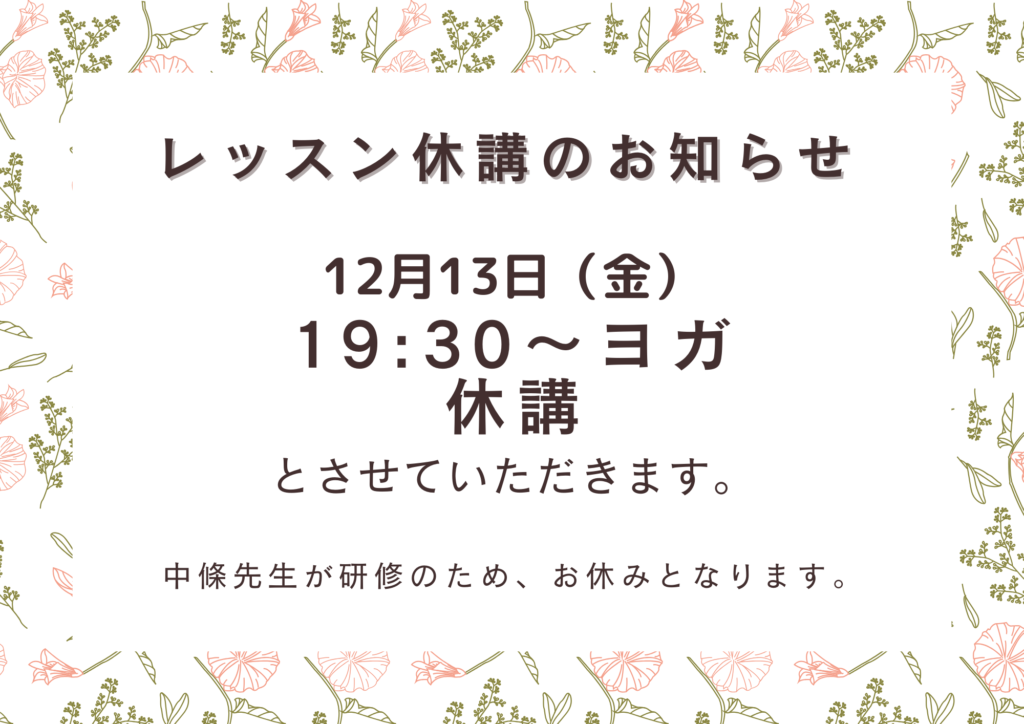 レッスン休講のお知らせ